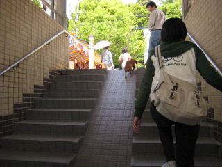 上って 急な坂道になっているので