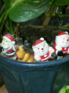 私は 毎年サンタさんを 植木にさして 年中クリスマス気分を味わおうと