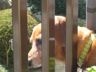 ベランダの柵から どこを見ているのか