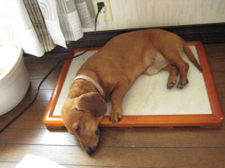 アトム君は いつも 涼しい所を探して寝ている
