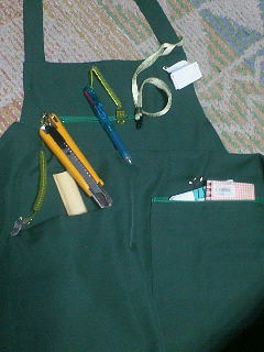 そのお陰で私のエプロンは あれこれぶら下がっている ボールペン カッター 無線を付けるストラップ メモ帳(裏紙利用) パソコンの操作など忘れちゃいけない事のメモ帳 軍手に 竹べら(のりのきついダンボールを開けるのに指の力がいらず便利) これは 職場の方のおじいちゃんの手作り 全員に作ってくださった