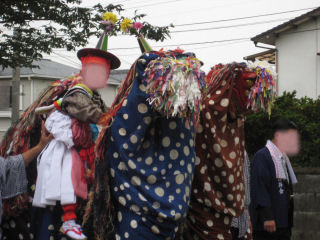 獅子つりの子供が 獅子に乗って お宮入り