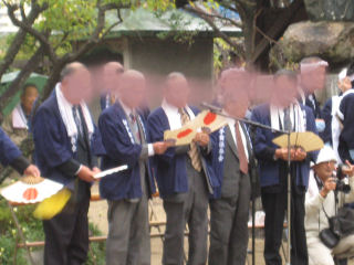 夫達も鉦をうって 開始の合図?