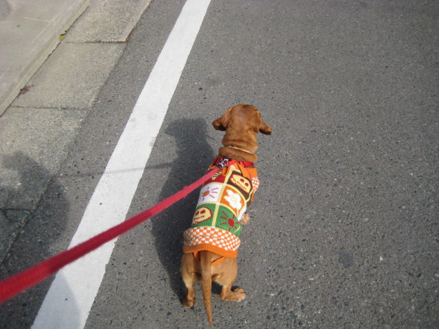 渋々 お散歩に