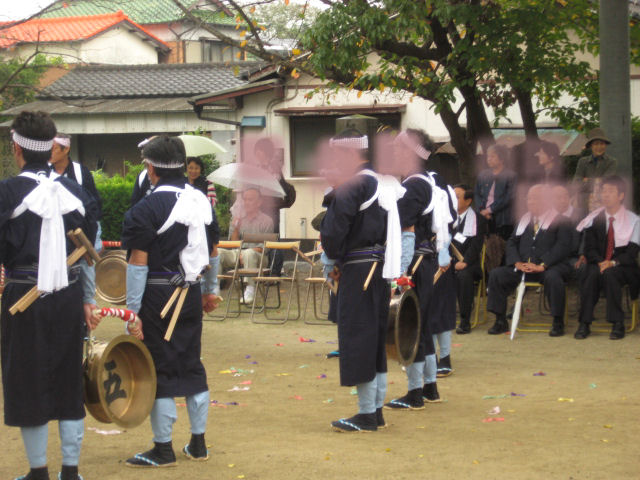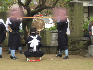 夫達も鉦をうって 開始の合図?